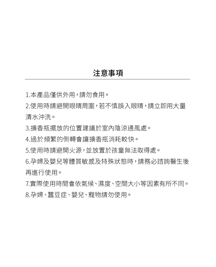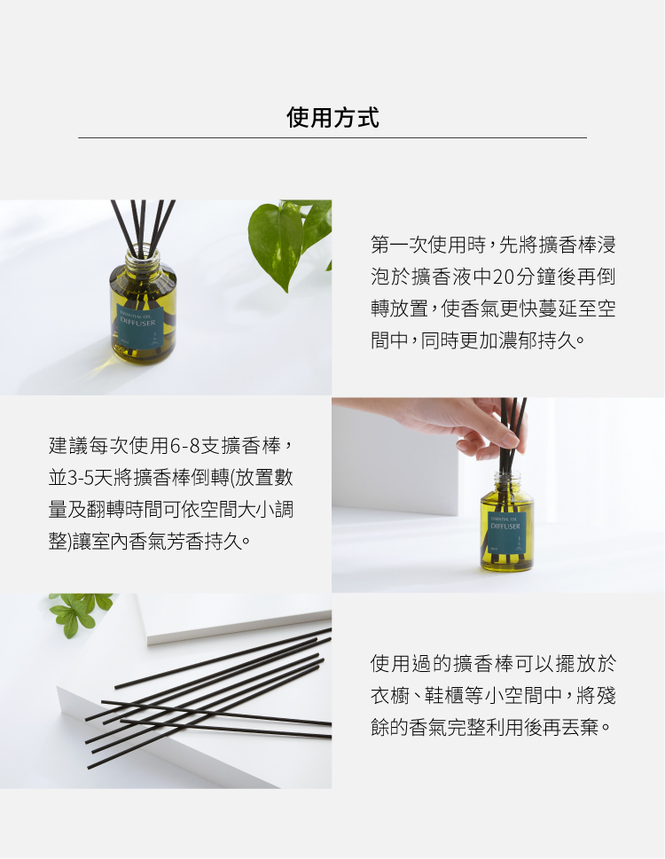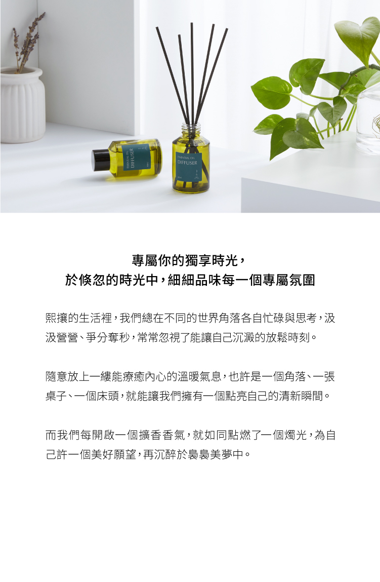 ***為避免擴香液揮發與滲漏,瓶口採密封設計,請將瓶塞移除後再開始使用。***