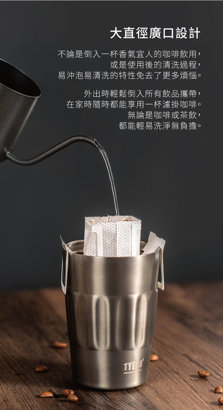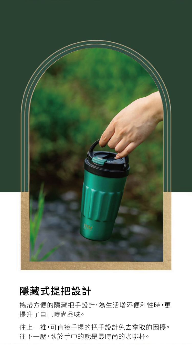 採用大直徑廣口設計,不論是飲用一杯香氣宜人的咖啡,或是使用後的清洗過程,易沖泡易清洗的特性免去了更多煩惱。擁有攜帶方便的隱藏把手設計,同時兼具利於手握的凹凸瓶身設計。為生活增添便利性的同時,更提升了自己時尚品味。