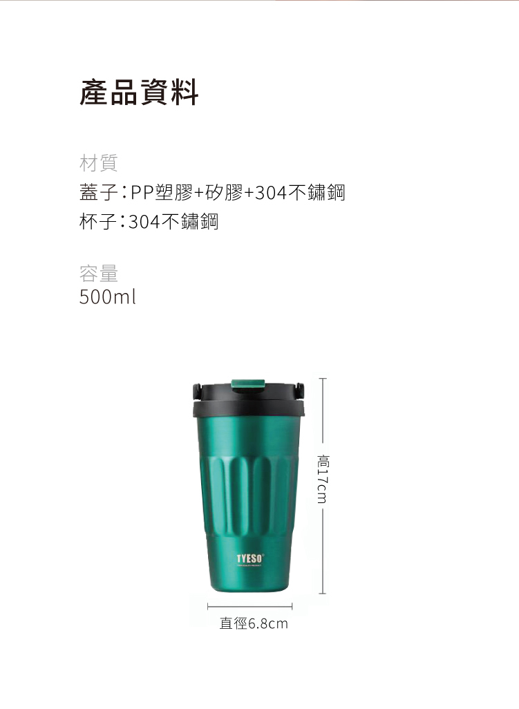 TYESO 髮絲不鏽鋼咖啡隨行杯 祖母綠 500ml